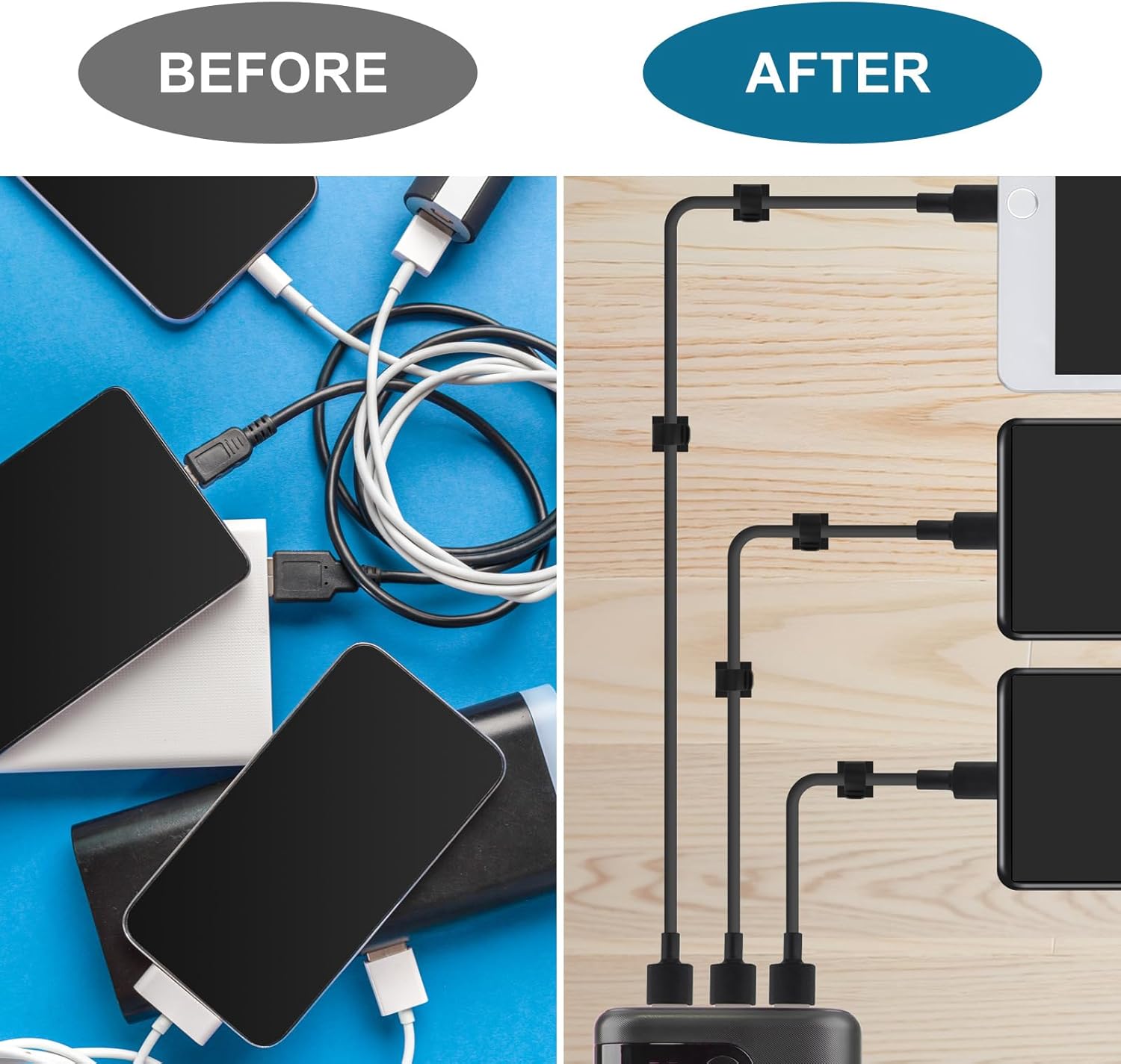 • Cable Organization: These cable clip organizers attach firmly to smooth surfaces, helping to keep your place organized and free from the annoyance of messy cables.
